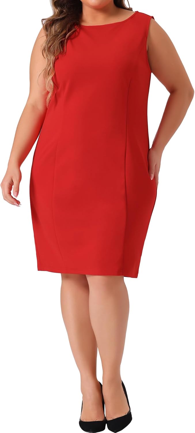 Agnes Orinda Plus Size Sheath Dress for Women Sleeveless Boat Neck Casual Straight Pencil Work Dresses