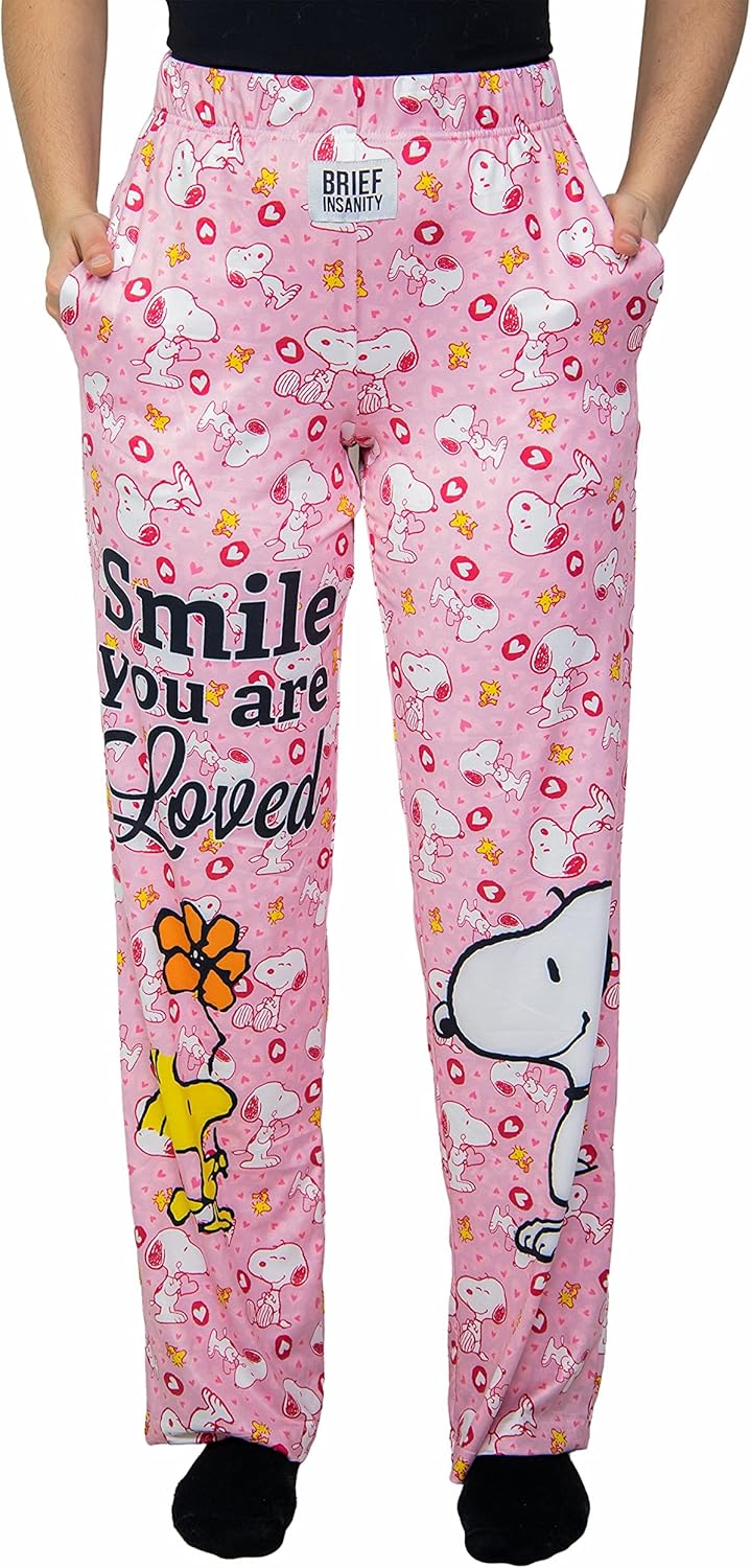BRIEF INSANITY Peanuts Snoopy & Woodstock Unisex Lounge Pajama Pants | Smile You are Loved Sleep Bottoms