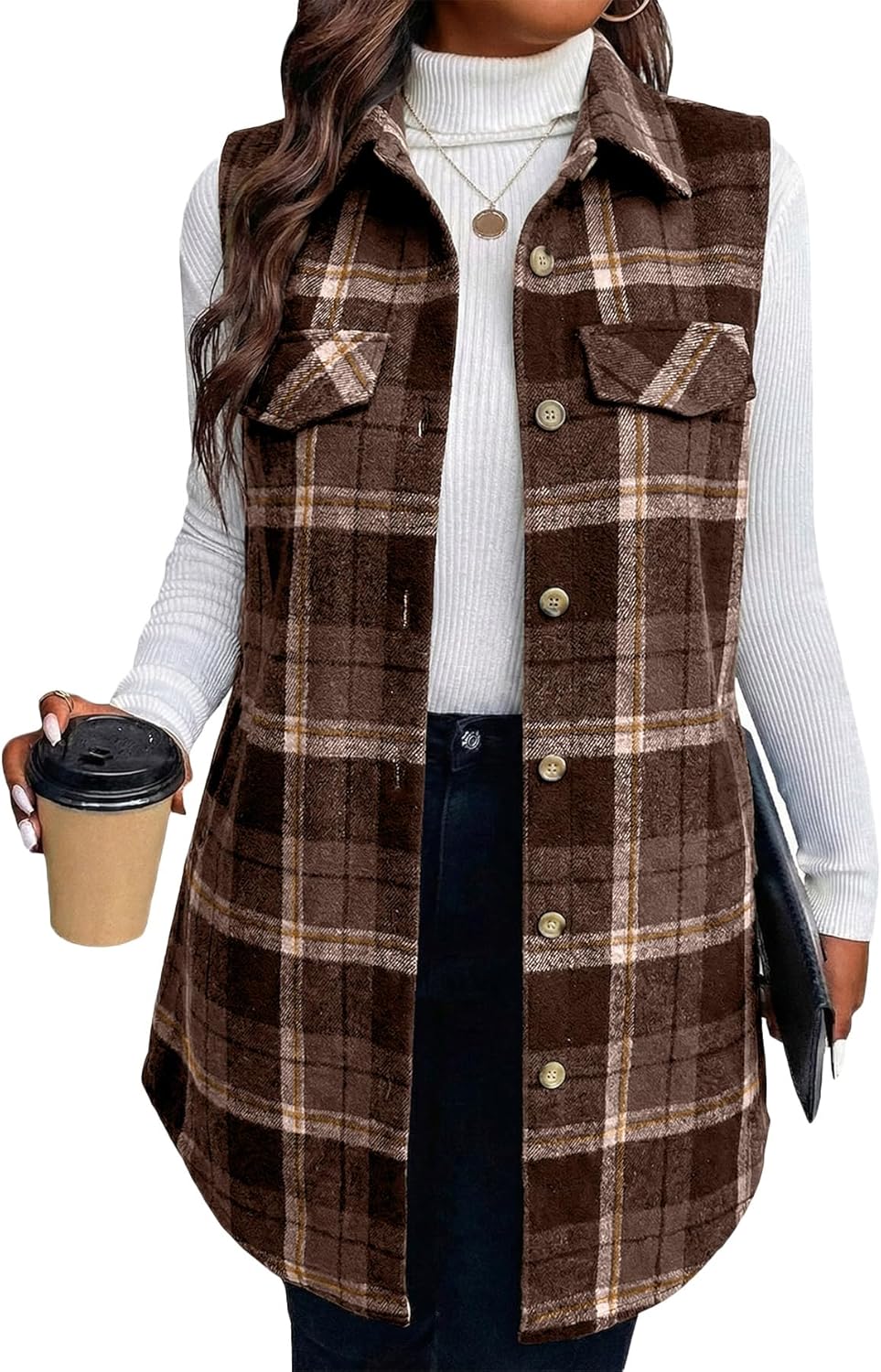 Mina Self 2025 Women's Flannel Plaid Vest Jackets- Fully-Lined Sleeveless Warm Long Casual Fashion Outerwear with Pockets