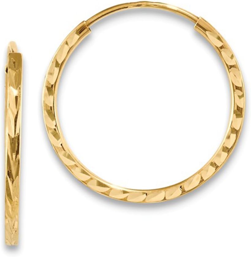 14K Yellow or White Gold Diamond Cut Square Tube Continuous Endless Hoop Earrings, 15-60mm (1.35mm Tube)