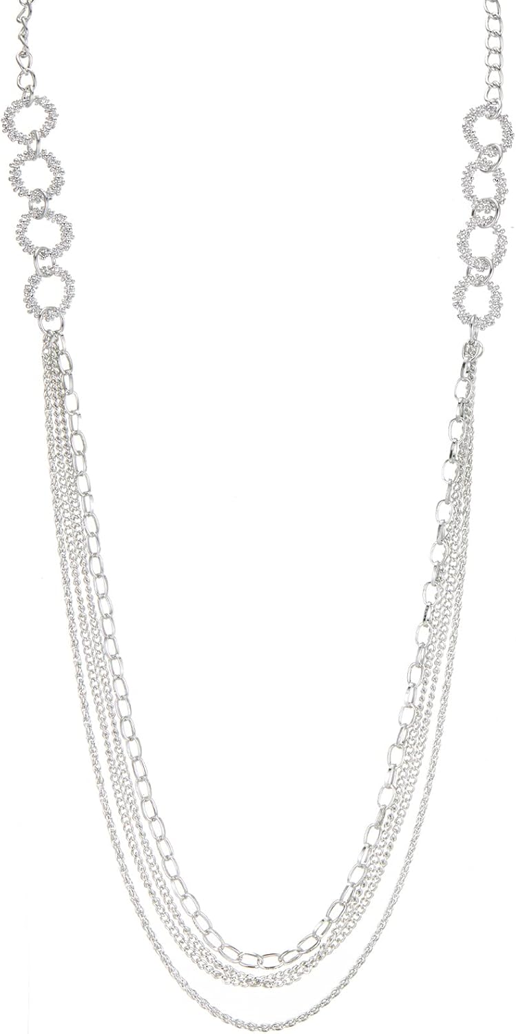 Noessla Layered Long Necklaces for Women Crystal Beaded Statement Necklace Sweater Silver Chain with Gifts Box Jewelry