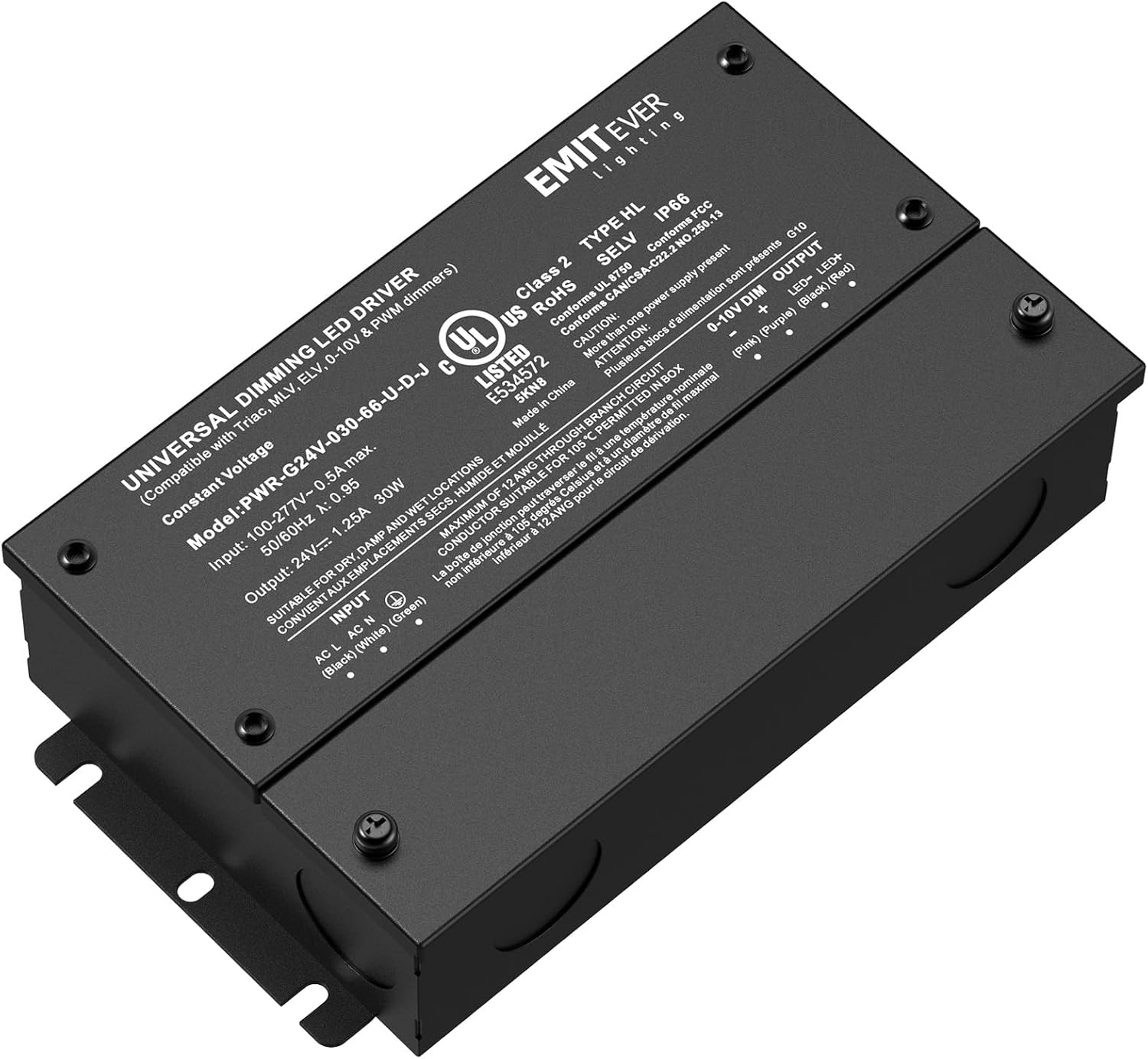 EMITEVER 30W Dimmable LED Driver, 24V Triac Dimmable Power Supply, AC to DC Transformer for LED Light, Compatible with Lutron and Leviton Dimmer, Waterproof IP67 and UL Listed, Class 2