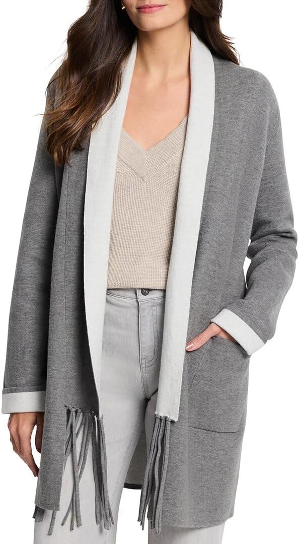 NIC+Zoe Womens Cool Nights Reversible Fringe Jacket