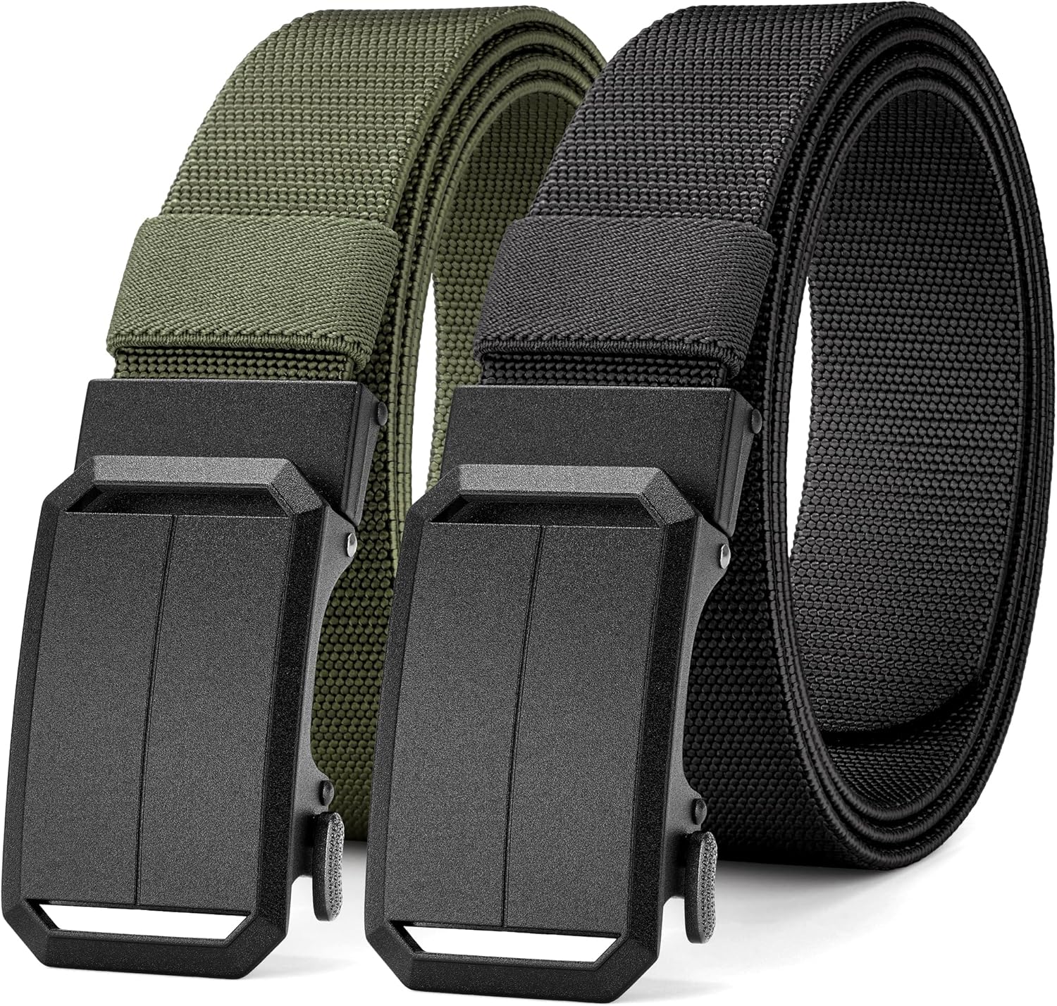 MILORDE Men's 2Pack Nylon Ratchet Belts, 1.38" Casual Web Click Belt for Jeans, Business Dress, Adjustable Trim to Fit