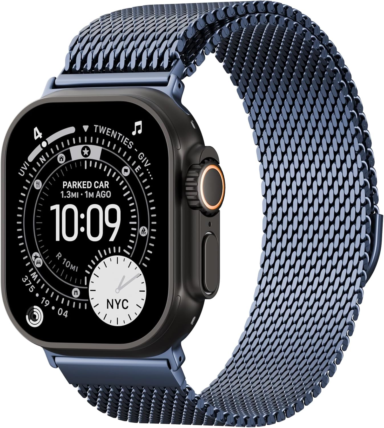 Magnetic Mesh Milanese Loop Compatible with Apple Watch Band 49mm 46mm 45mm 44mm 42mm 41mm 40mm 38mm Men Women, Stainless Steel Metal Strap for iWatch Ultra 3/2/1 Series 11 10 9 8 7 6 5 4 SE