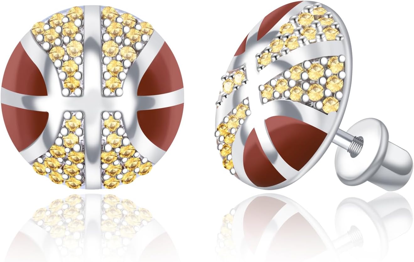 Sport Screwback Earrings for Women - Silver Softball/Volleyball/Soccer/Basketball/Rugby Screw Stud Jewelry Gifts for Sport Fans Christmas Easter Thanksgiving Day