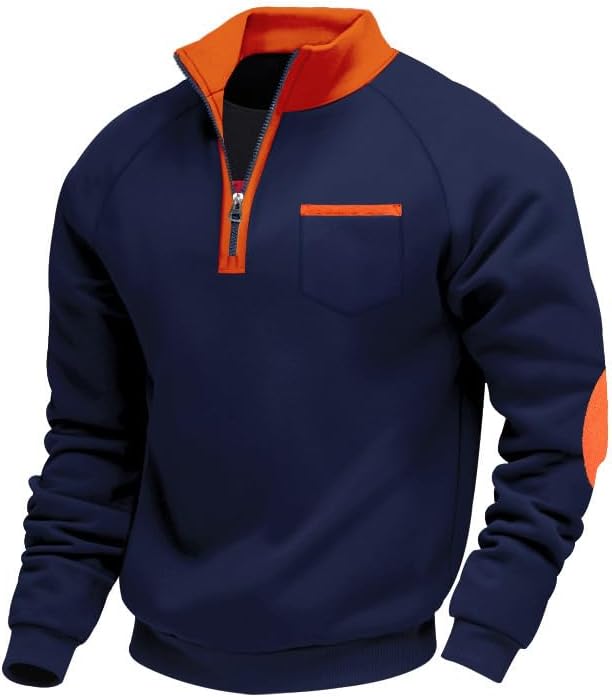 Men's Quarter Zip Pullover - Stand Collar Sweatshirt with Pockets Casual Wear for Vacation Daily Use