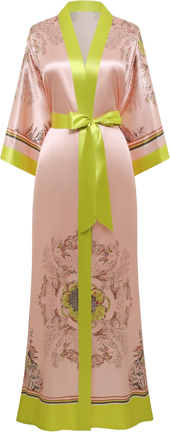 PRODESIGN Kimono Robes for Women - Long Satin Sleepwear Silky Nightgown Bathrobe Floral Dressing Gown Blouse Wedding Robe