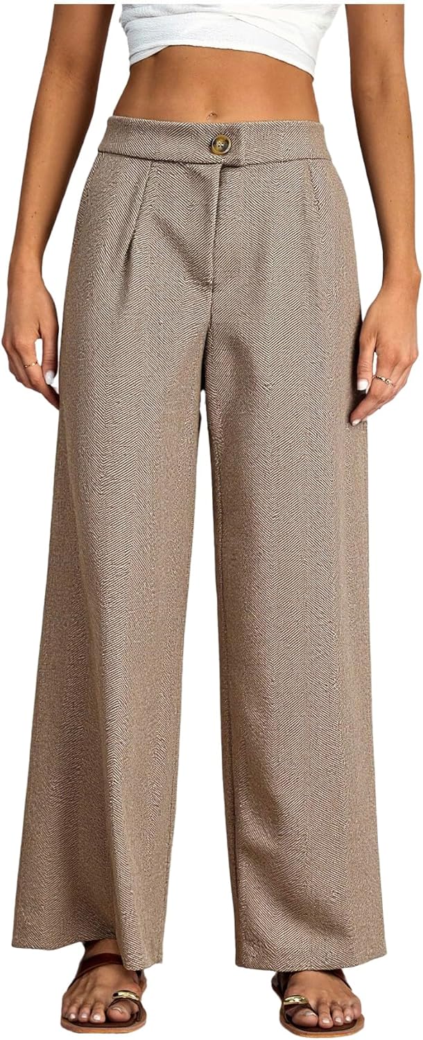 Women's High Waisted Dress Pants Fall Vintage Straight Leg Business Casual Trousers with Pockets