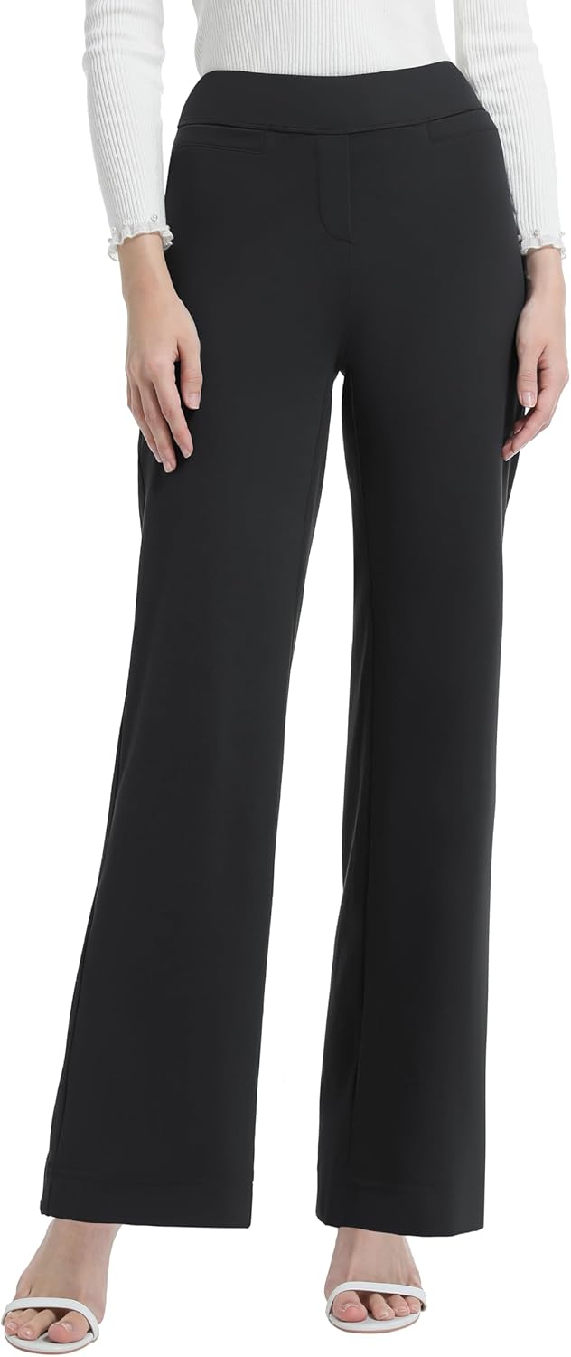 V VOCNI Women Dress Pants Wide Leg Pull On Work Pants High Waist Bootcut Trousers Business Casual Slacks