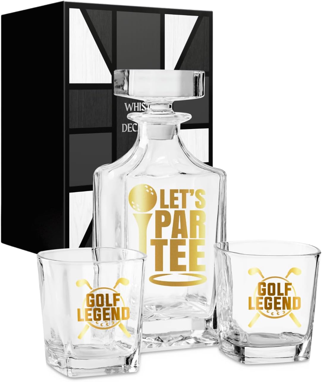 Onebttl Golf Gifts for Men, Golf Whiskey Decanter Set, Perfect Gifts for Golfers, 25oz/750ml Decanter with Stopper and 2 Glasses for Liquor, Bourbon, Whiskey on Christmas, Father's Day, Birthday