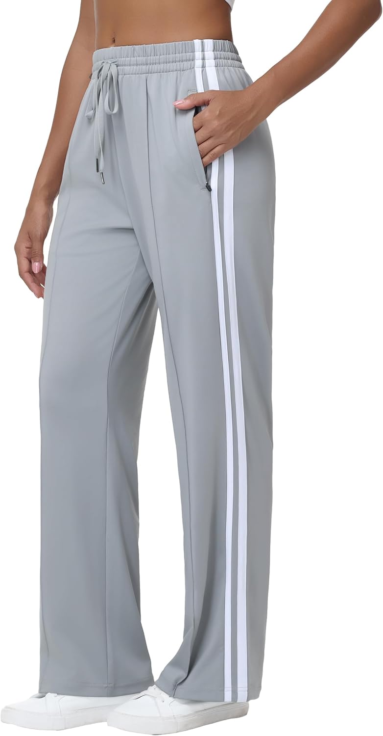 Women’s Athletic Track Pants - Loose Fit Jogging Sweatpants with Zipper Pockets Drawstring Waist Striped