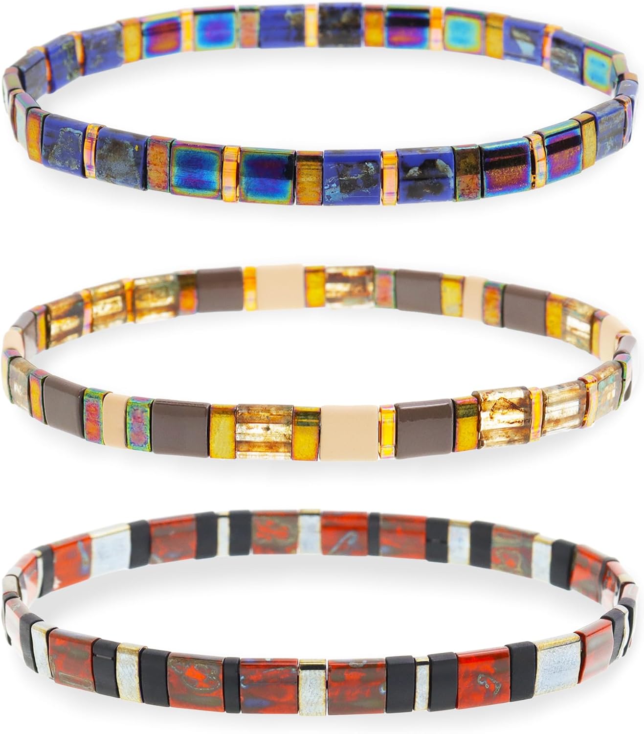 Sonateomber Tila Flat Beaded Stretch Stack Bracelets Set for Women, Trendy Stackable Colorful Glass Square Beads Bracelet Friendship Accessories Jewelry Gift