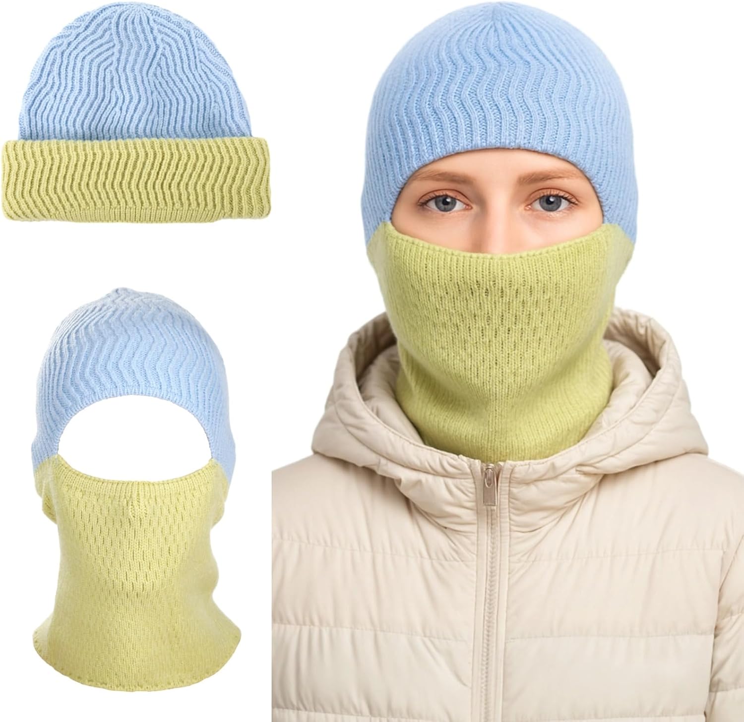 2 in 1 Balaclava Ski Mask Beanie, Winter Warm Knit Hat for Men Women, Foldable Polyester Trendy Beanie, Full Face Cover for Skiing, Cycling, Hiking, Cold Weather Outdoor Headwear