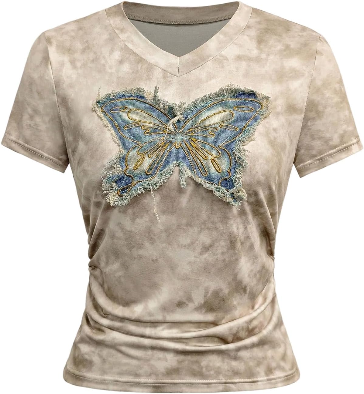 SOLY HUX Women's Y2k Graphic Tees Short Sleeve V Neck Ruched Fitted Cropped T-Shirt Tops Streetwear