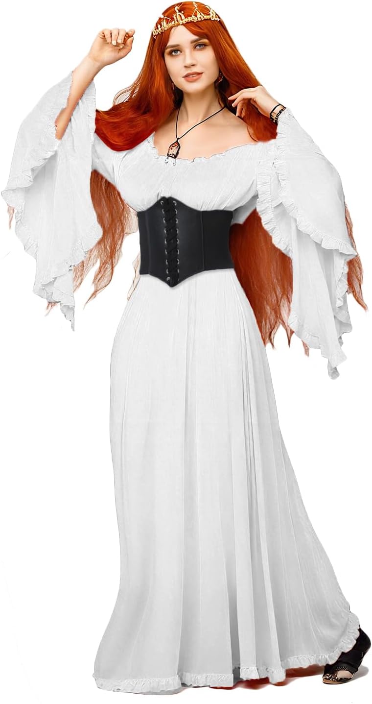 BITSEACOCO Women Renaissance Fairy Chemise Dress Victorian Costumes Halloween Cosplay Medieval Witch Princess Dresses
