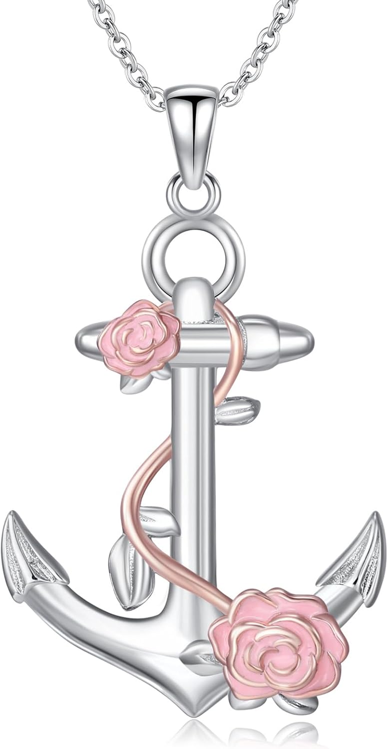 Anchor Pendant Necklace for Women 925 Sterling Silver Nautical Necklace Navy Sailor Necklace for Women Anchor Jewelry Gifts for Sea Ocean Lover Daughter Girlfriend Wife