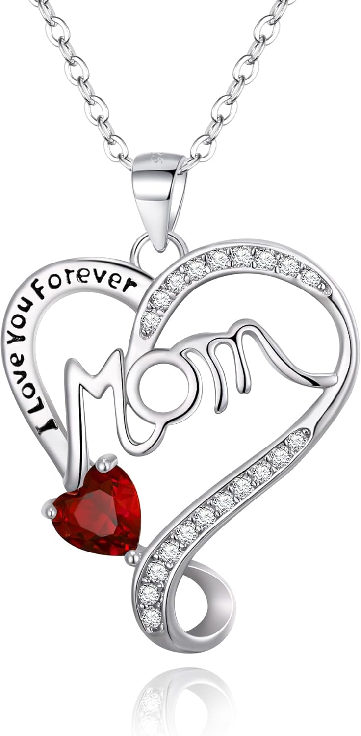 EVER FAITH Mom Necklace S925 Silver CZ Birthstone Jewelry I Love You Forever Heart Pendant Necklaces from Daughter Birthday Gifts for Women