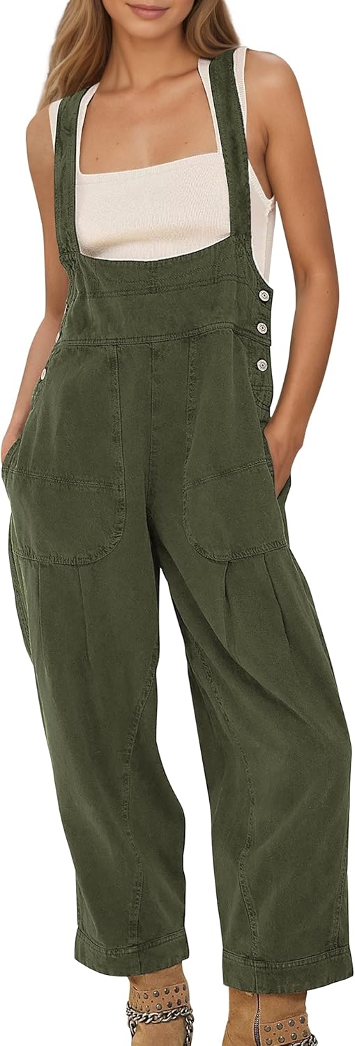 YUENIU Women's Effortless Denim Overalls Adjustable Straps Loose Fit Jumpsuit Tapered Leg Bib Romper with Pockets