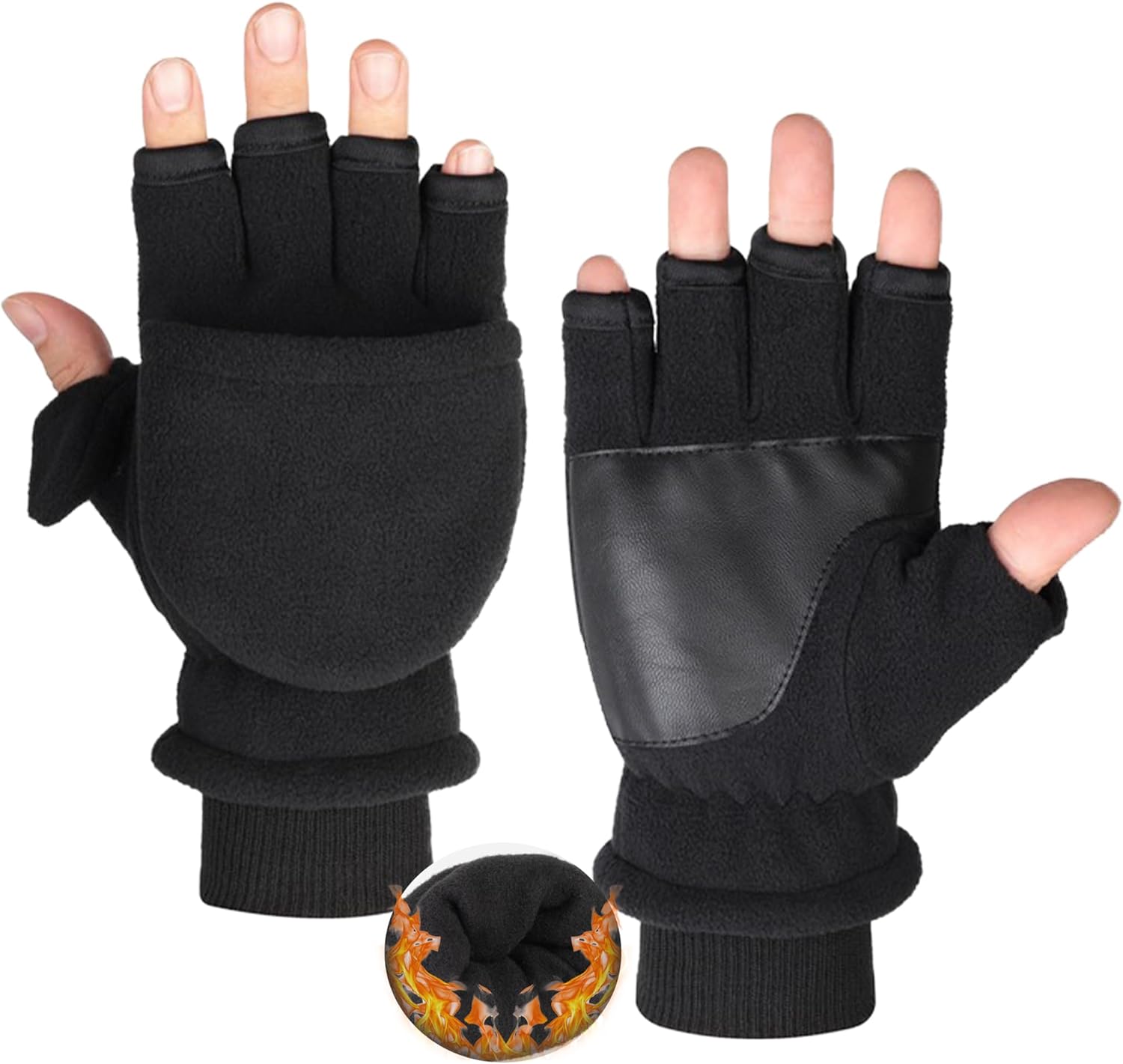 - 2-in-1 Convertible Design: These fingerless gloves for men and women feature a flip-top mitten cap secured with Hook and Loop, easily converting from warm mittens for cold weather to dexterous fingerless gloves for typing, driving, or running