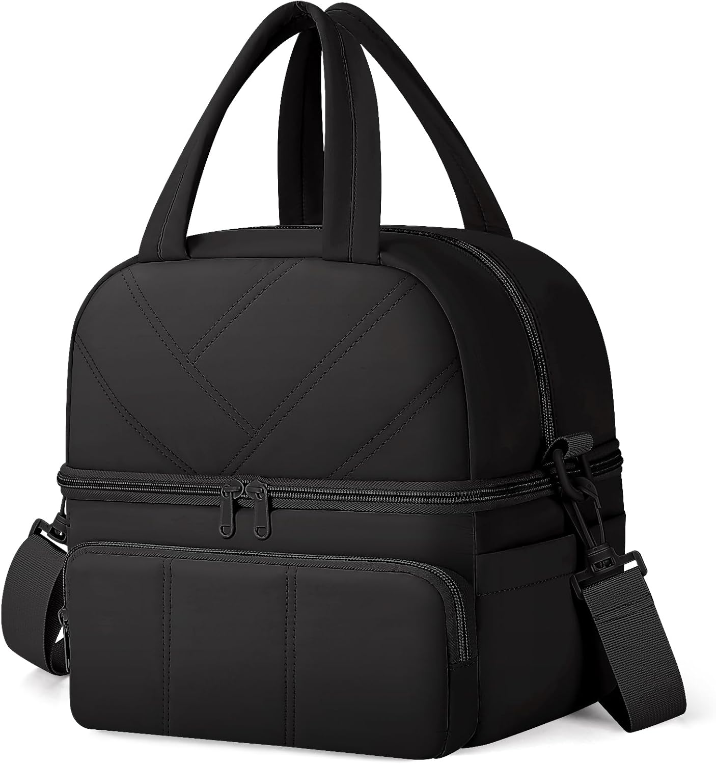 - Stylish Double-Deck Lunch Bag: The Vuudh insulated lunch bag features a lightweight puffer build and chic quilted design, weighing just 0.75 lb. Two insulated compartments keep warm and cold items separate—dry snacks up top, leakproof space for drinks and meals below—ensuring neat organization and stable packing.