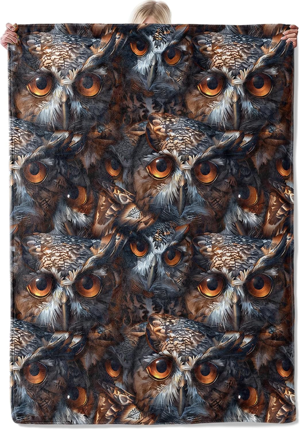 Realistic Owl Throw Blanket Gifts for Wildlife Lovers, Soft Fuzzy Warm Cozy Flannel Blankets for Bedroom, Travel, Couch, Animal Throws, Realism Mystery Home Decor 50x60 Inch