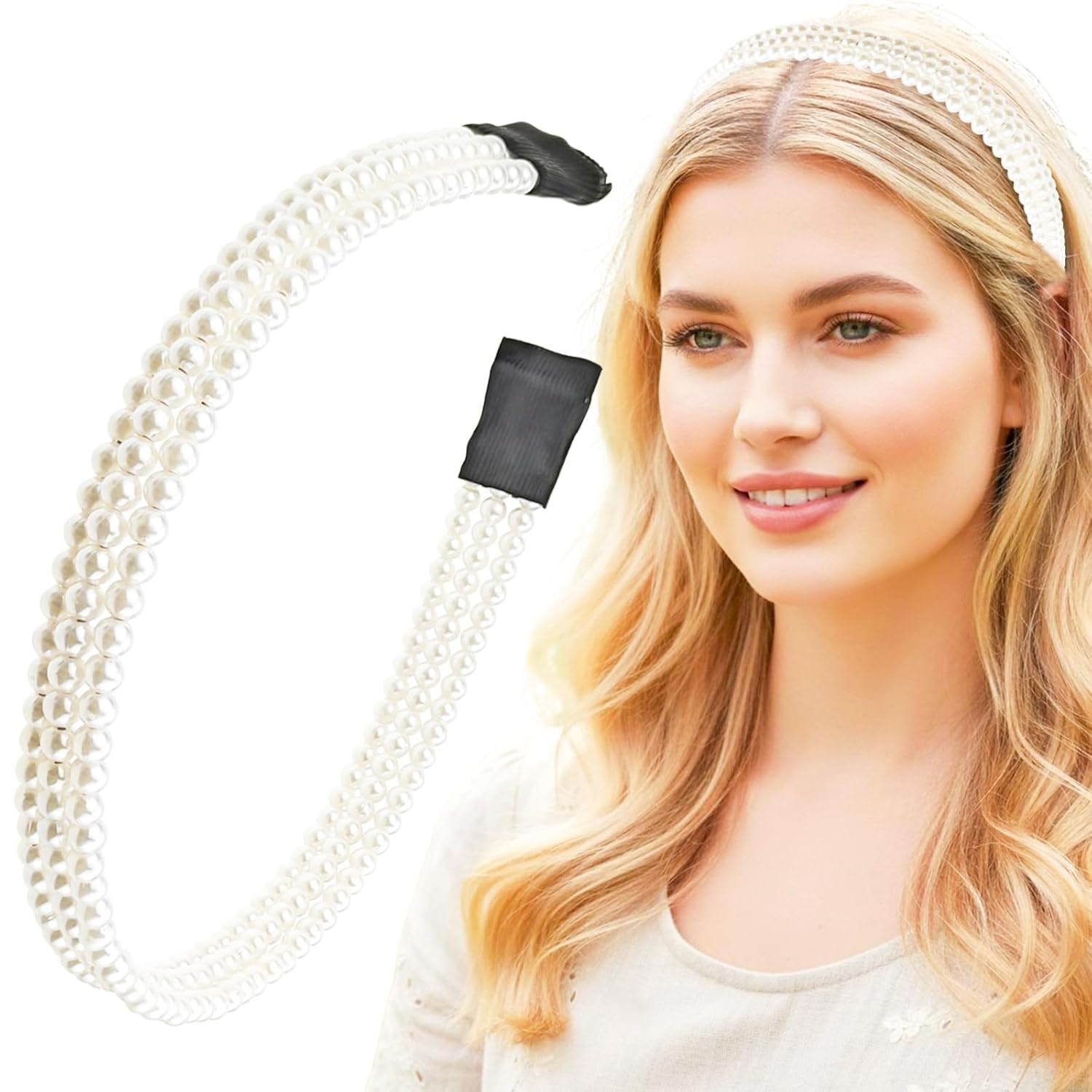- 【FASHION HAIRBANDS】- Elevate your hairstyle with our exquisite 3-row pearl headband, designed to provide a stylish and sophisticated look for women.