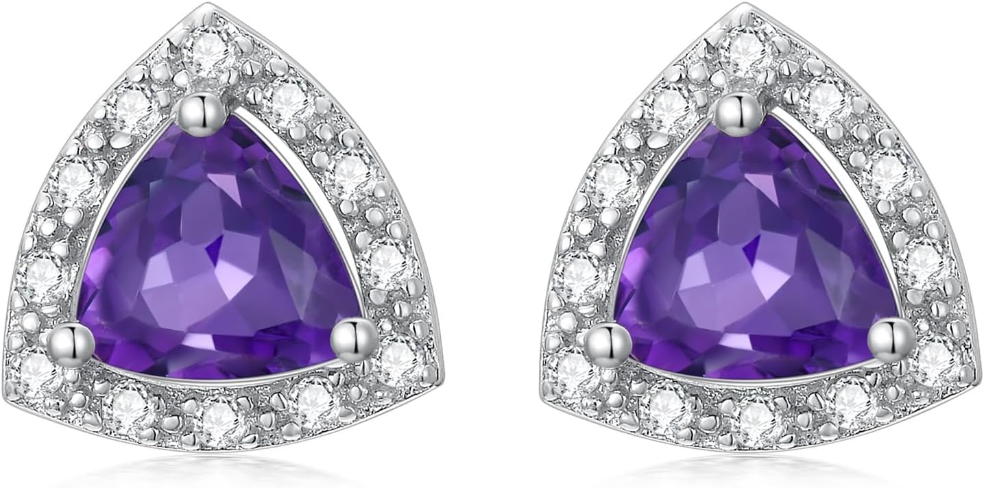 925 Sterling Silver February Birthstone Stud Earrings for Women Hypoallergenic 5mm Triangle Created Amethyst Crystal Earrings Birthday Jewelry Gift