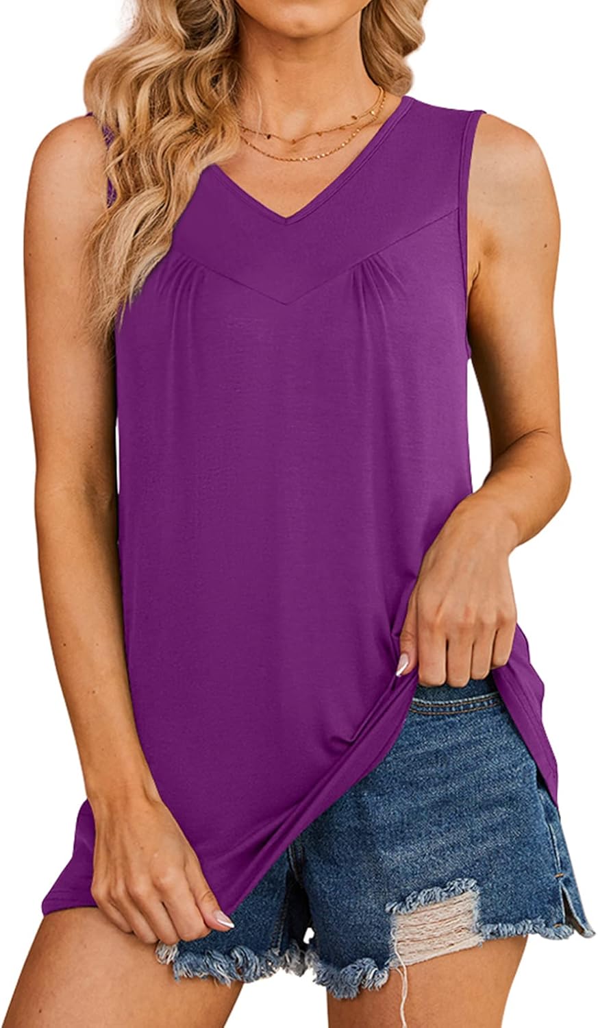 AYIFU Womens Summer Tank Tops V Neck Sleeveless Shirts Casual Loose Fit Tunic