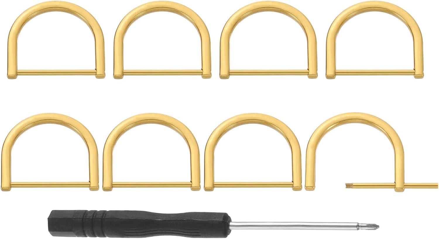 uxcell D-Rings Screw in Shackle, 8Pcs 1.26 Inch Zinc Alloy Horseshoe U Shape D Ring Buckles for Purse DIY Leather Craft Keychain, Gilding Gold