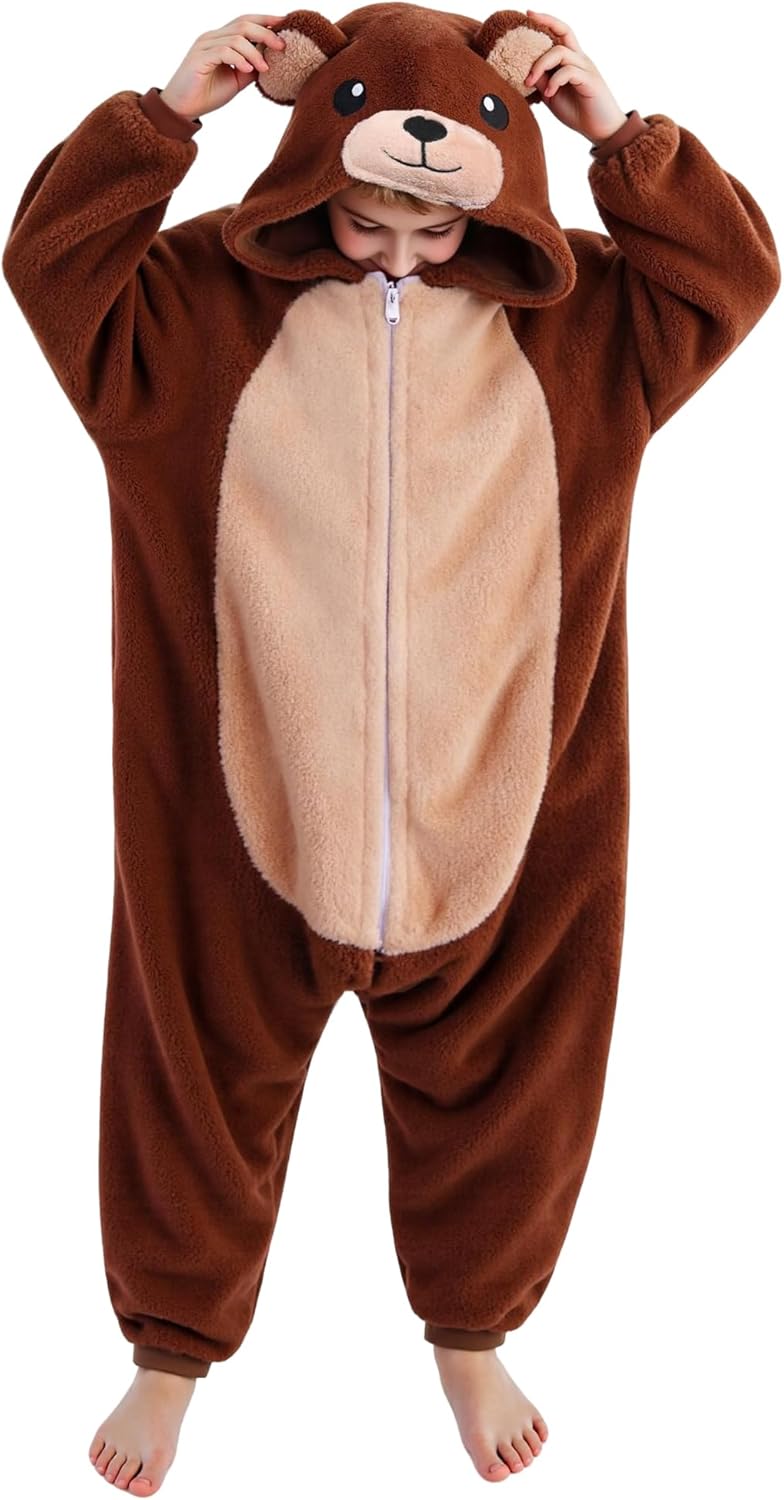 Kids Animal Onesie Pajamas Unisex Children Brown Bear One Piece Pajamas for Girls Boys Halloween Costume Dress Up