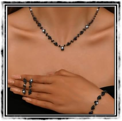 Crystal Rhinestone Jewelry Set with Necklace, Bracelet and Rings, Sparkly Wedding Accessories Party Prom Earrings Jewelry for Women