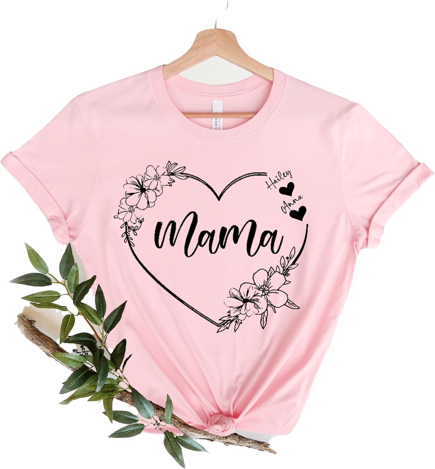 Custom Text Heart Line Shirt, Double Heart Shirt, Your Name Heart Line Shirt, Custom Grandma Shirt, Personalized Mom Shirt, Customized Heart