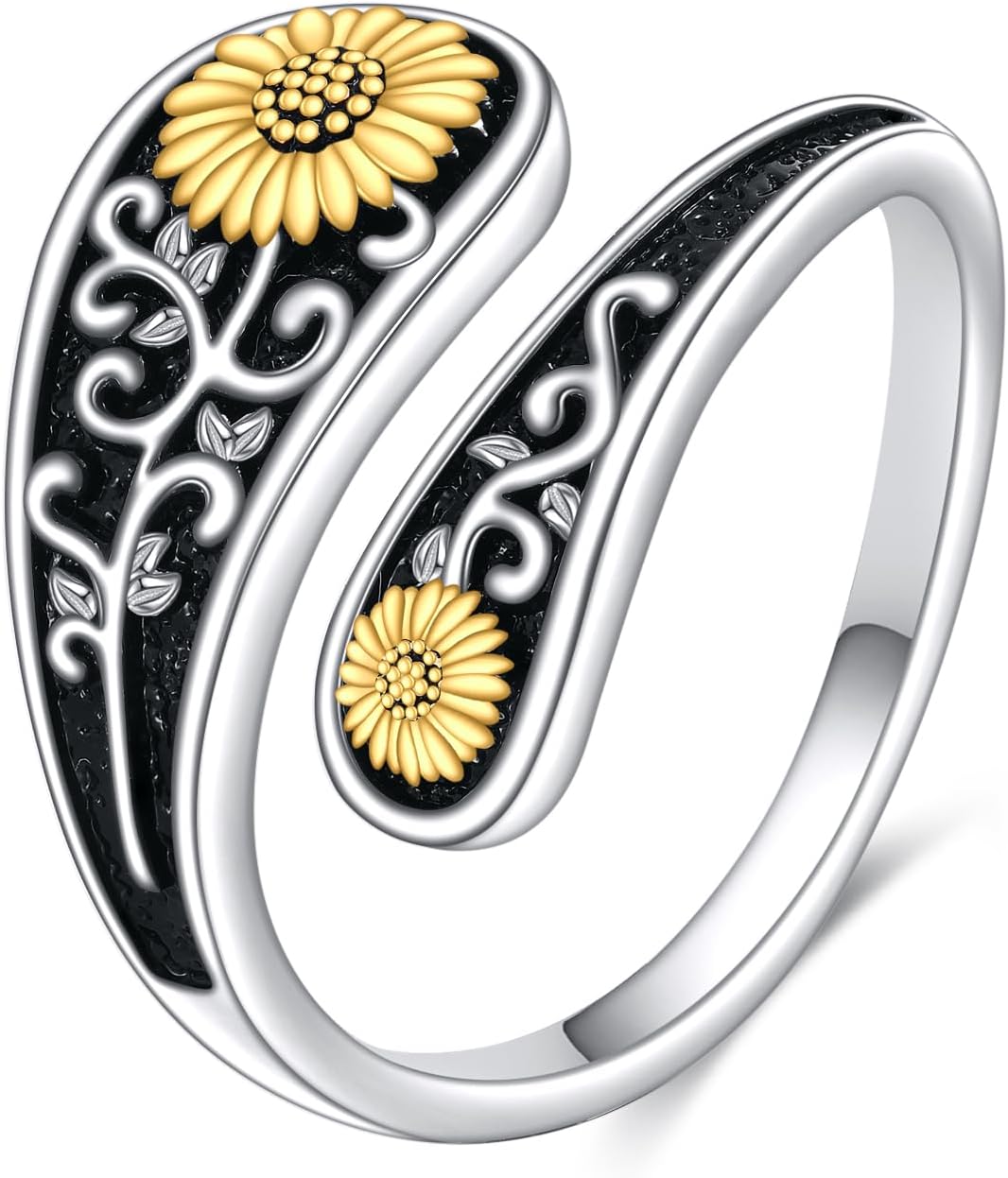 Turquoise Dragonfly/Hummingbird/Horseshoe/Sunflower Spoon Ring Sterling Silver Vintage Boho Thumb Rings for Women Men Victorian Jewelry Size 7