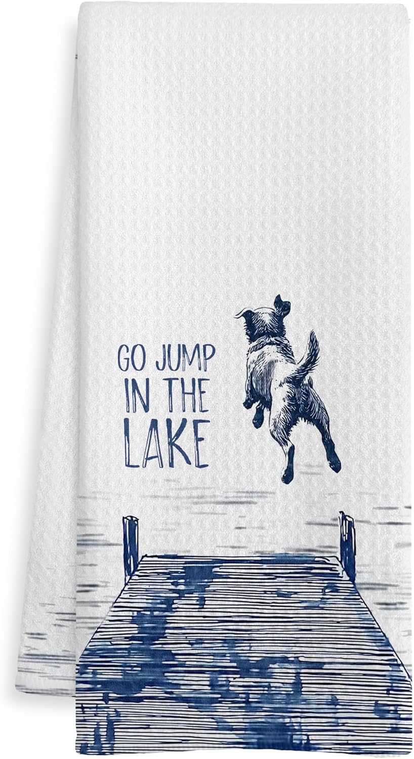 Lake House Decor Kitchen Towels, Funny Lake Golden Retriever Gift Dish Tea Towel for Kitchen Decor, Golden Retriever Lover Gifts Hand Towels for Bathroom Decor, 16x24 Inch