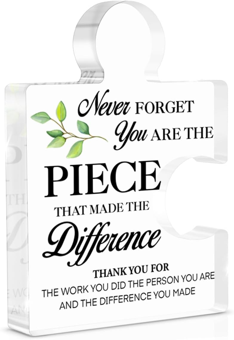 Team Gifts for Employees, Thank You Gifts for Coworkers Teacher Nurse, Farewell Promotion Retirement Appreciation Gift, Never Forget You Are the Piece Made the Difference, Acrylic Puzzle Plaque Decor