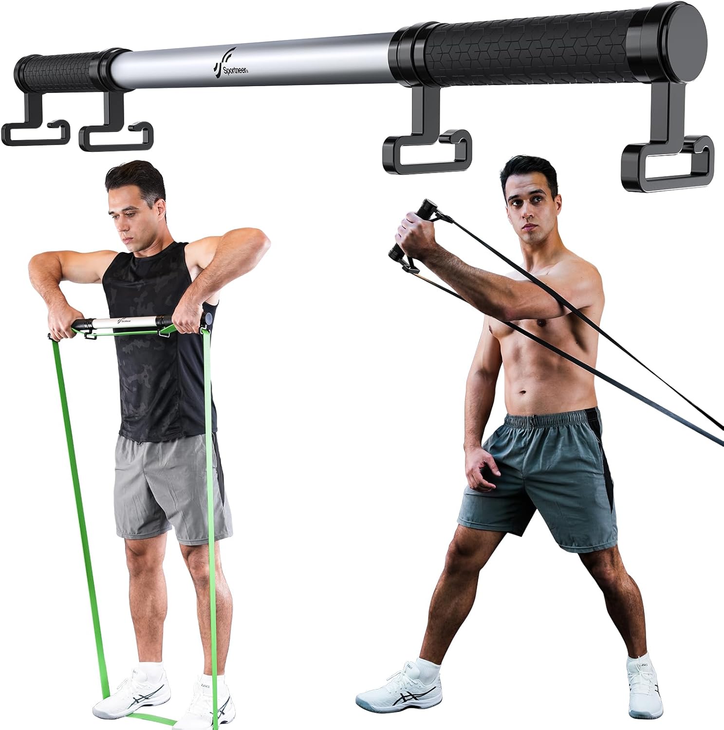 - PATENTED DUAL SWITCHABLE MODES: The Sportneer original designed workout exercise bands bar can seamlessly switch between handles and horizontal bar modes for tailored workouts. Precision training of smaller muscle groups or unleashing the power of larger muscles is at your fingertips with this adaptable design. Two modes bar for resistance bands can maximize your results with more comfort, control, and performance.