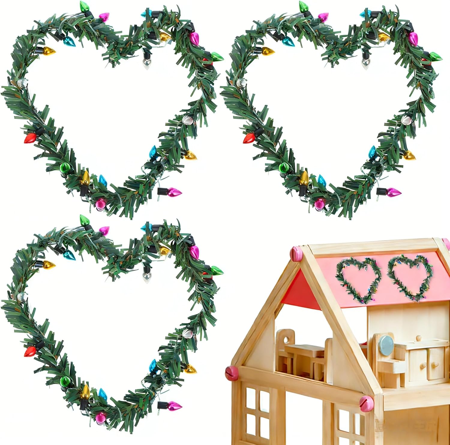 Alasum 4pcs Dollhouse Miniature Christmas Holiday Garland with Lights Mini Wreath String Fairy Lights Christmas Decoration for 1/12 Dollhouse Xmas Fireplace Decorations Lamp Beads Cant Light