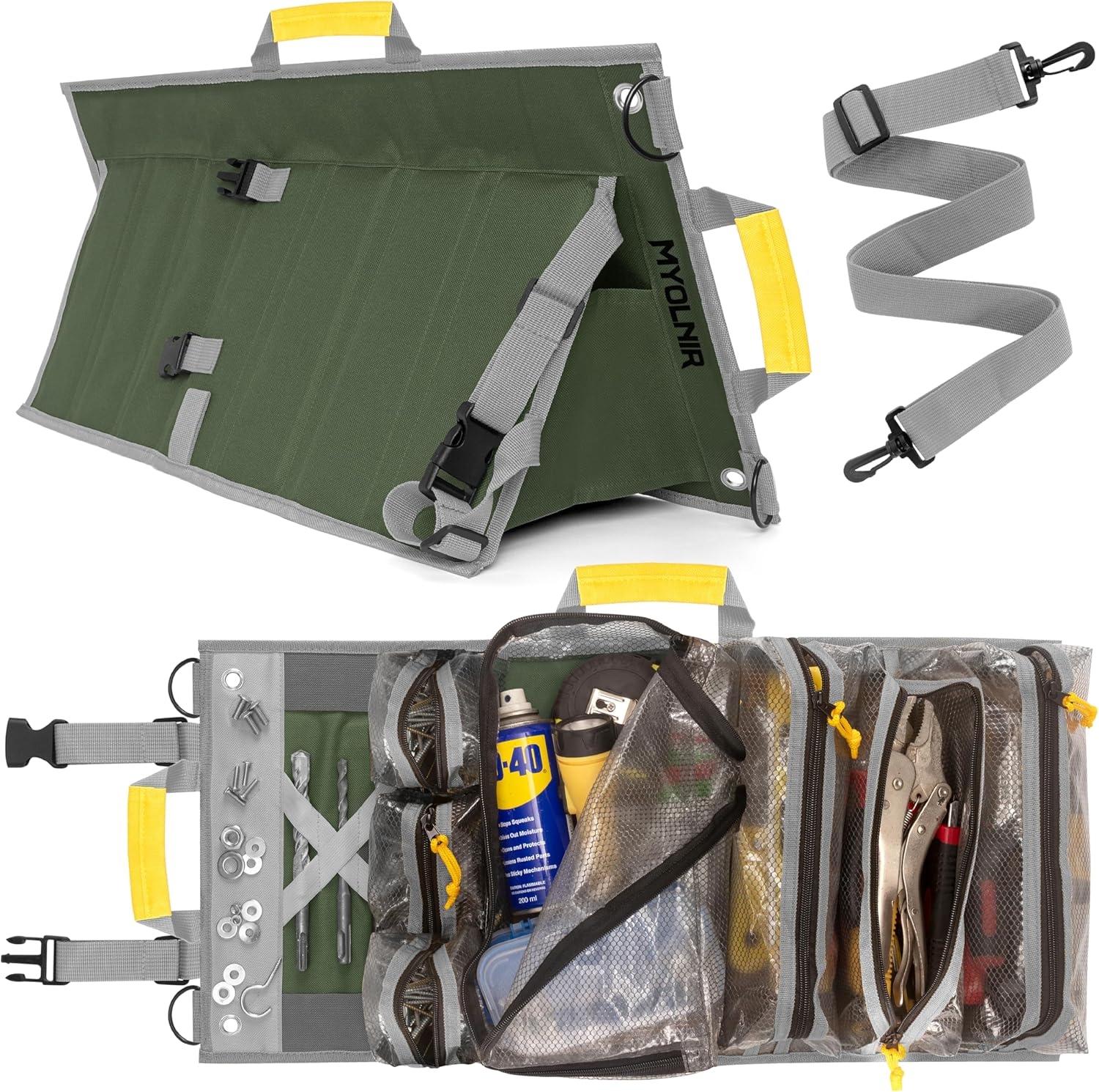 - Transparent Pockets: See sockets, bits, pliers, and drivers at a glance—no rummaging or unzipping every sleeve. The compact roll-up footprint fits motorcycle and car tool kits as well as home DIY setups, making it a practical organizer for pros and weekend projects alike.