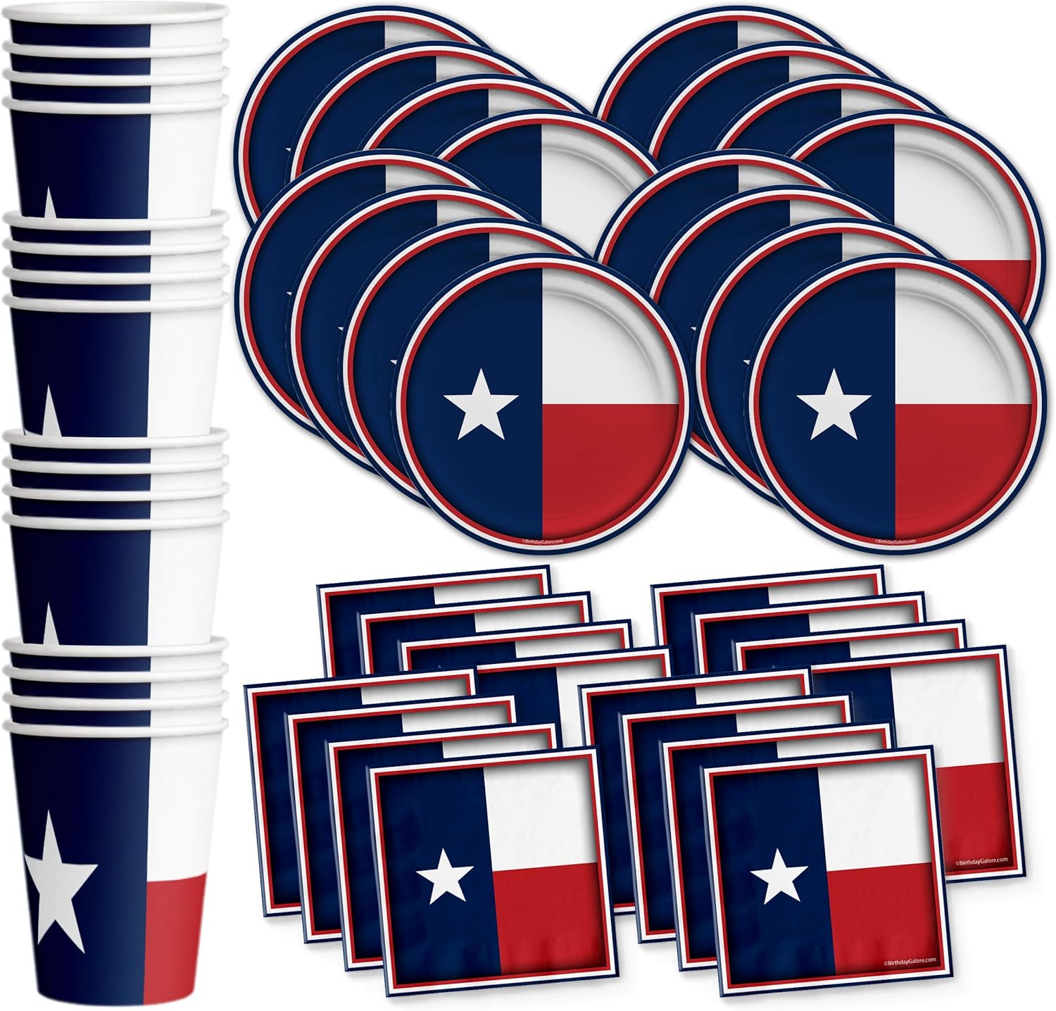 Texas State Flag Birthday Party Supplies Set Plates Napkins Cups Tableware Kit for 16