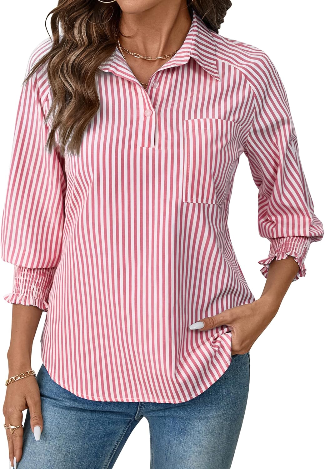 Kistore Women Blouses 3/4 Sleeve Business Shirts Smocked Cuffed Spring Dressy Casual Tops 2026 Fashion S-XXL