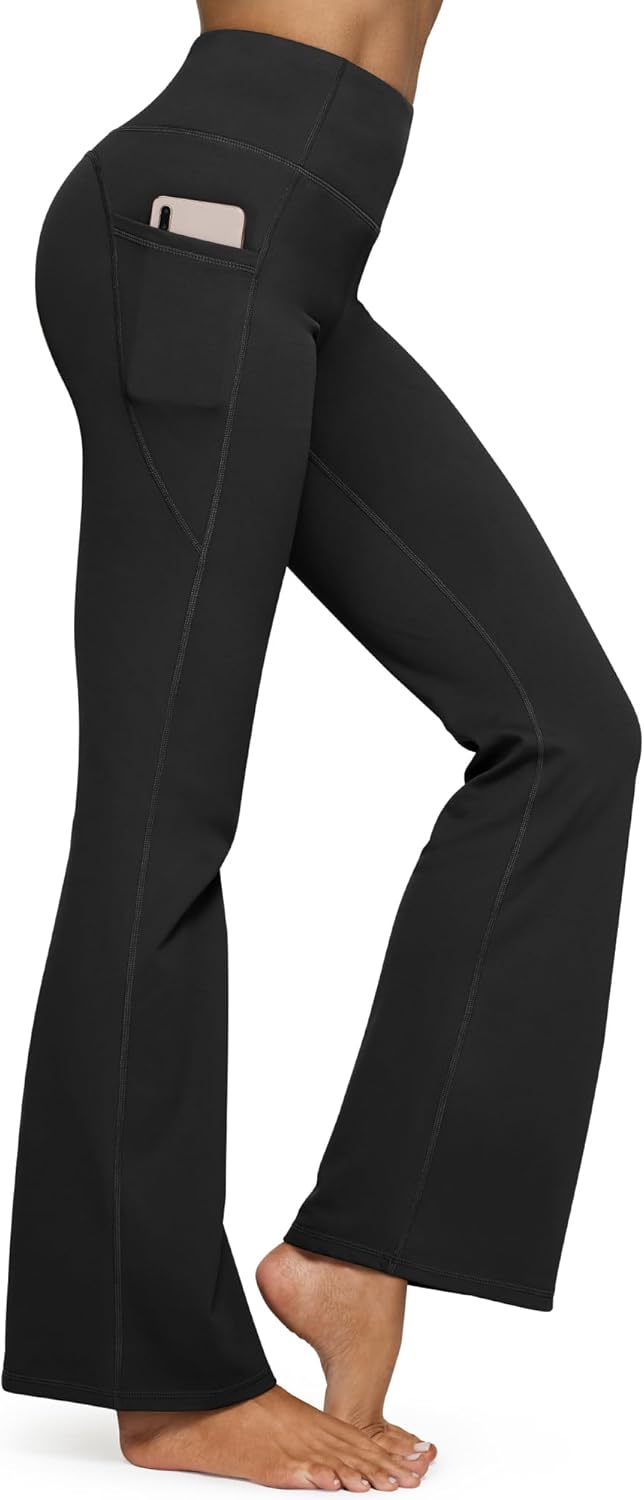 G4Free Fleece Lined Flare Leggings for Women High Waisted Winter Thermal Yoga Pants with Pockets 29"/31"/33"