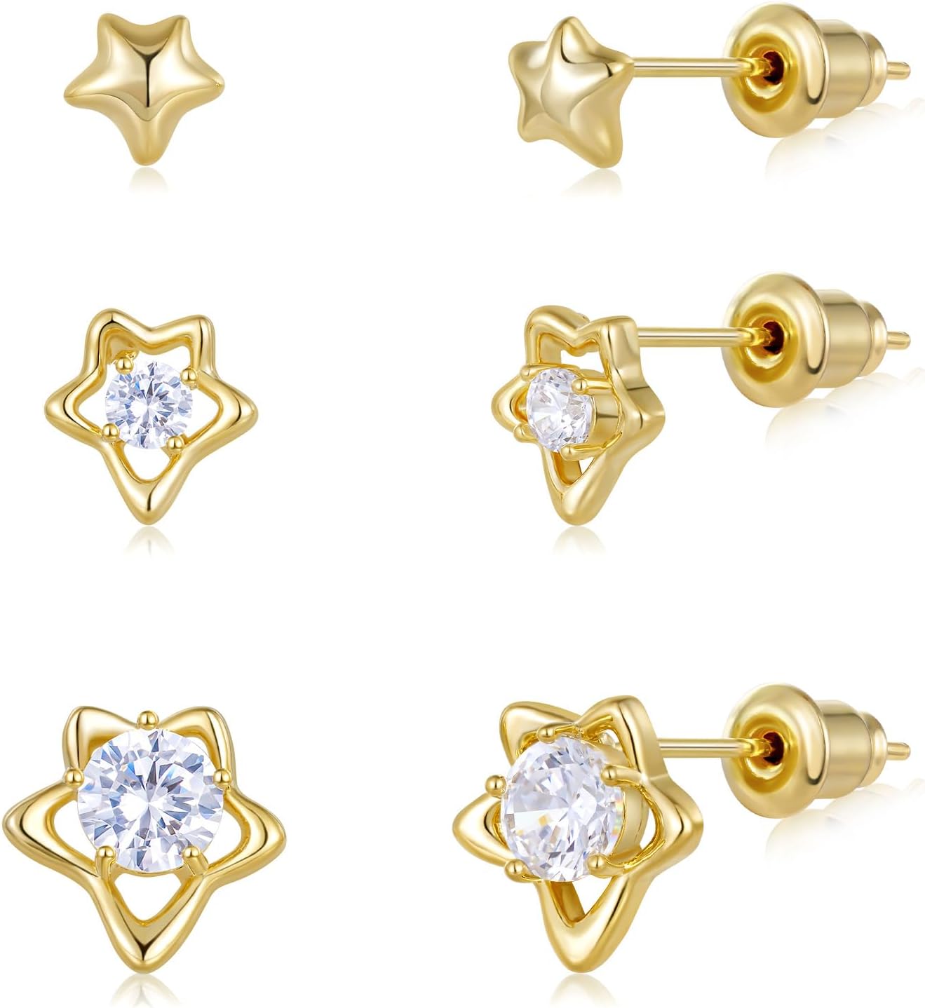 KissYan Stud Earrings for Women, 14K Gold Plated 3 Pairs Cubic Zirconia Small Stud Earring Multipack Hypoallergenic Dainty Trendy Jewelry Gifts