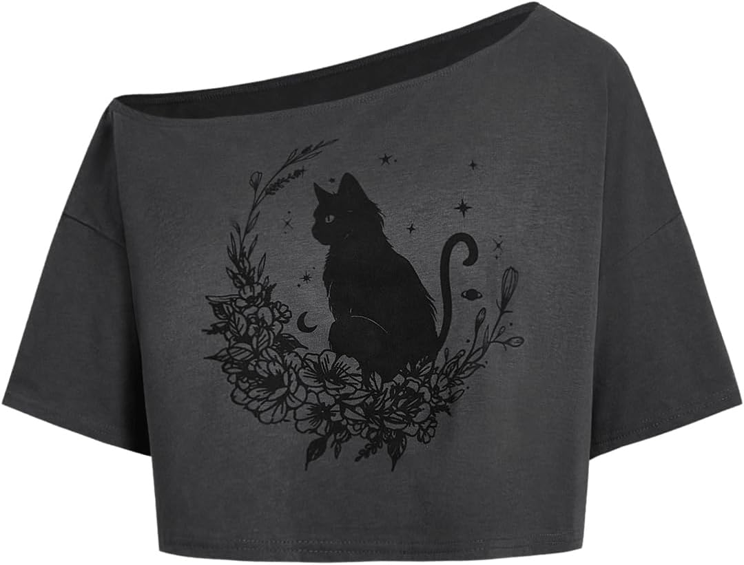 SOLY HUX Women's Plus Size Off The Shoulder Crop Tops Graphic Tees Short Sleeve Loose Fit T Shirts