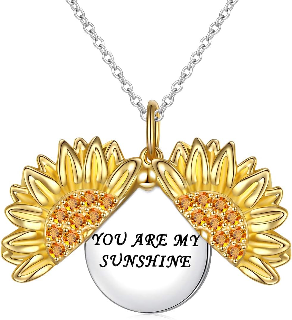 Ladytree You Are My Sunshine Sunflower Locket Necklace That Holds Pictures in Sterling Silver Pendant Necklace for Women
