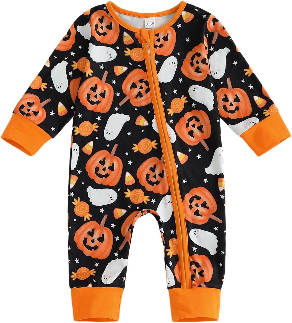 Lamuusaa Newborn Baby Girl Boy Halloween Outfit Long Sleeve Pumpkin/Ghost Romper Zipper Bodysuit Jumpsuit Fall Clothes