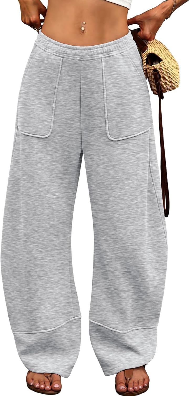 ELLEVEN Womens Fleece Lined Barrel Sweatpants – Low Rise Thermal Lounge Pants, Baggy Wide Leg with Large Pockets