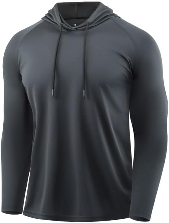 Men Quick Dry Hoodies Shirt Long Sleeve Workout Athletic Gym Pullover Hooded Shirts