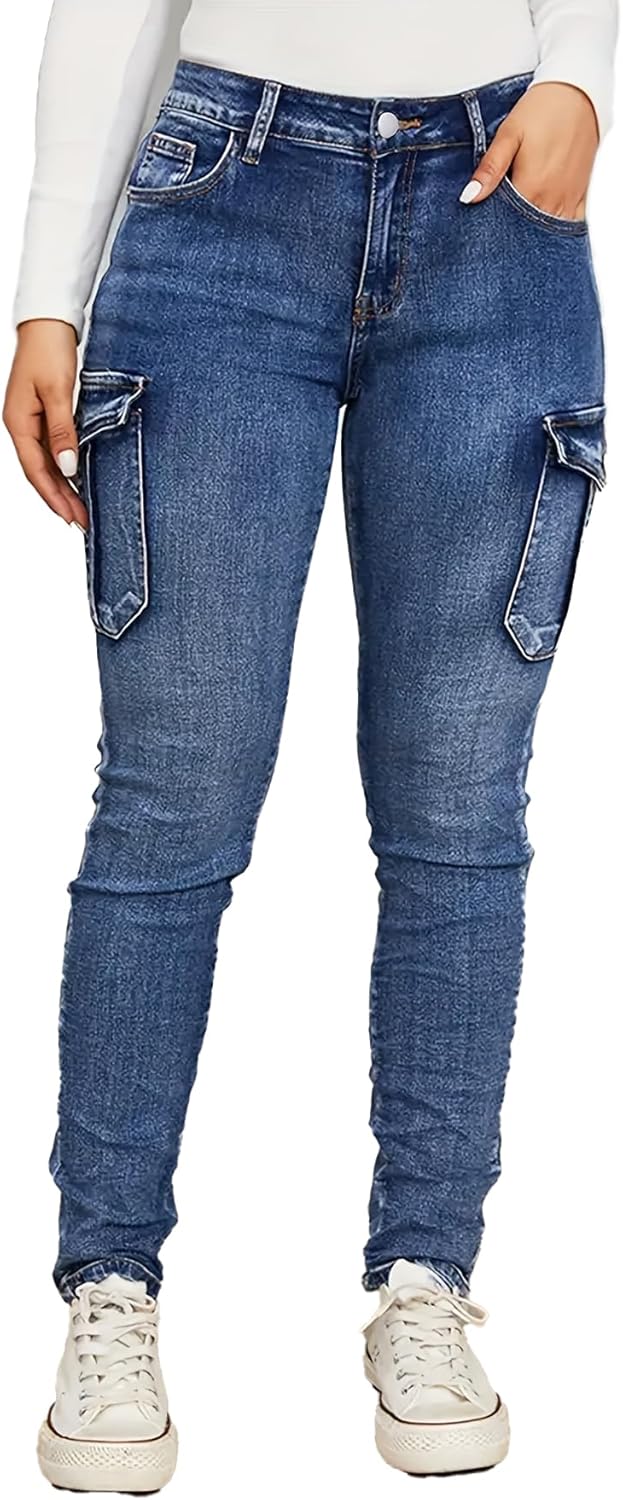 Cargo Skinny Jeans for Women Trendy Stretchy High Waisted Flap Pocket Denim Pants