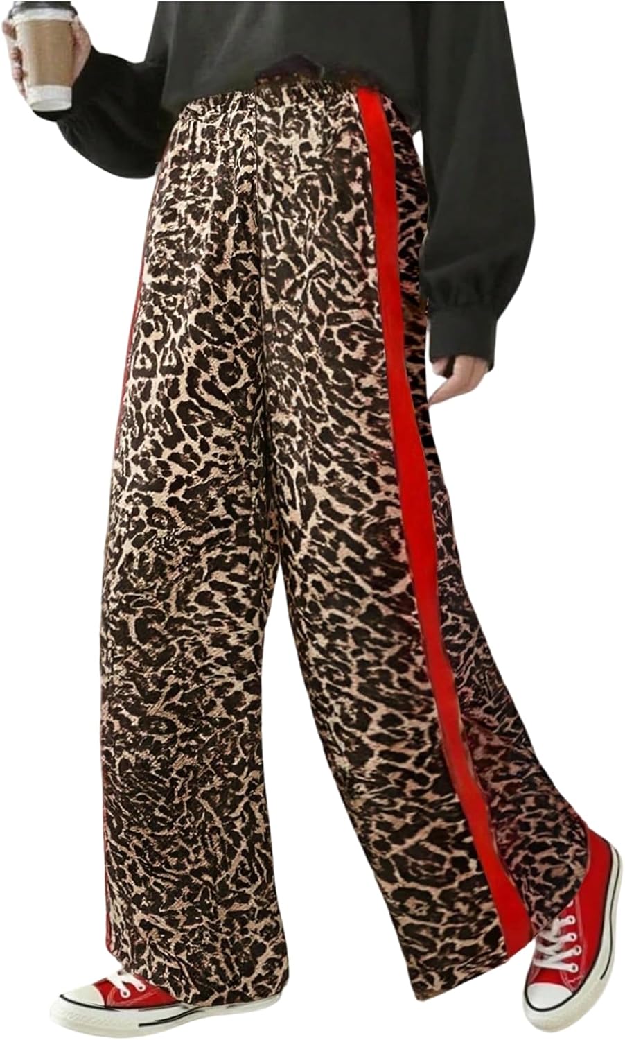 GORGLITTER Women's Y2k Leopard Print Pants Casual Cheetah Print Striped Wide Leg Baggy Track Pants Bottoms Trousers